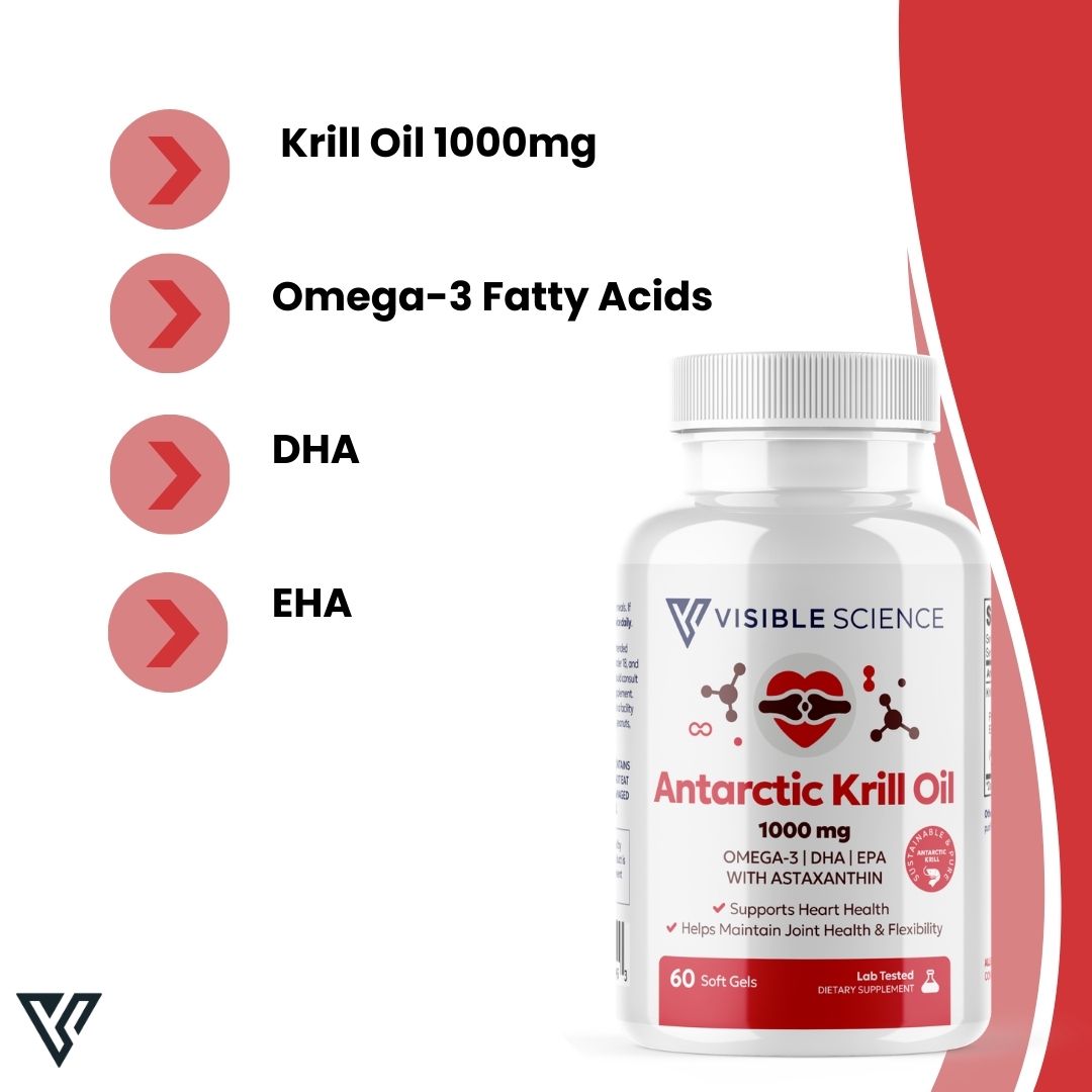 Meet Visible Science Antarctic Krill Oil! Sourced from the pristine waters of Antarctica, each capsule delivers phospholipid-bound omega-3s and naturally occurring astaxanthin. Our vanillin-infused formula means no fishy aftertaste—just pure, premium marine nutrition in a convenient daily capsule. Supporting your wellness routine with ocean-friendly nutrition.