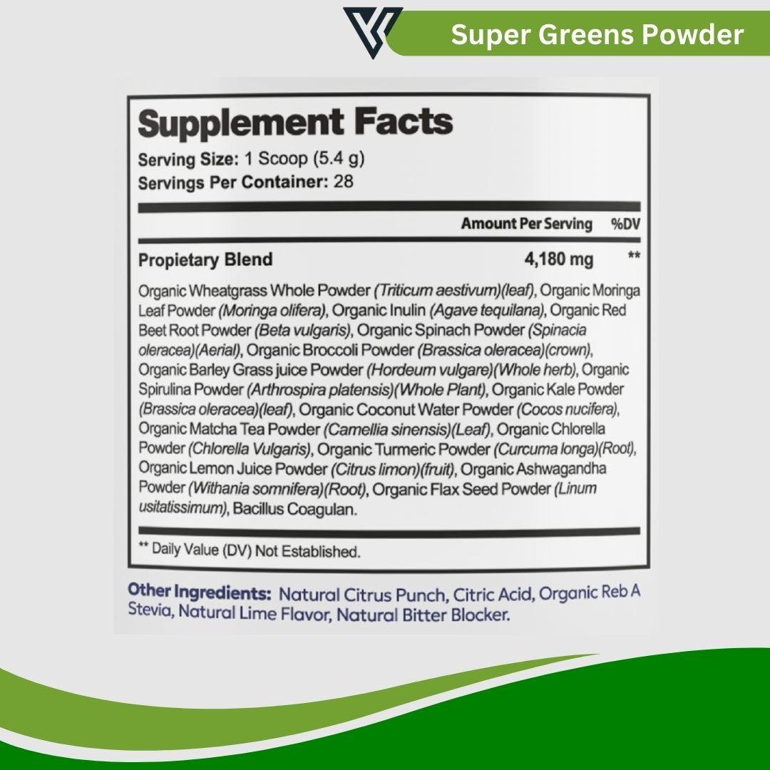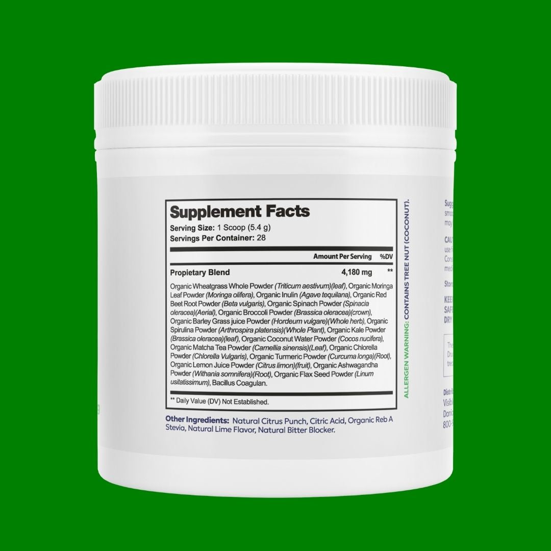 Each scoop delivers a carefully crafted 4,180mg proprietary blend where organic ingredients take center stage. We've balanced leafy greens with nutrient-rich botanicals and included Bacillus Coagulans as part of our comprehensive blend. Our natural citrus punch flavor (with a hint of lime) transforms these nutrient-dense plants into a surprisingly delicious experience—no "drinking the lawn" vibes here!