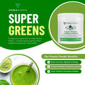 Our Super Greens Powder brings nature's goodness to your glass with minimal fuss and maximum flavor. We've thoughtfully selected 18 premium plant ingredients—from organic wheatgrass and spirulina to matcha tea and turmeric—creating a vibrant blend that's more colorful than your average salad drawer!