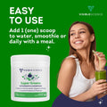 Simply mix one scoop with water or blend into your morning smoothie. The natural bitter blocker ensures a smooth taste while our special processing preserves the integrity of each ingredient. It's plant nutrition made convenient—because getting your greens shouldn't require a salad spinner and three different farmers' markets!